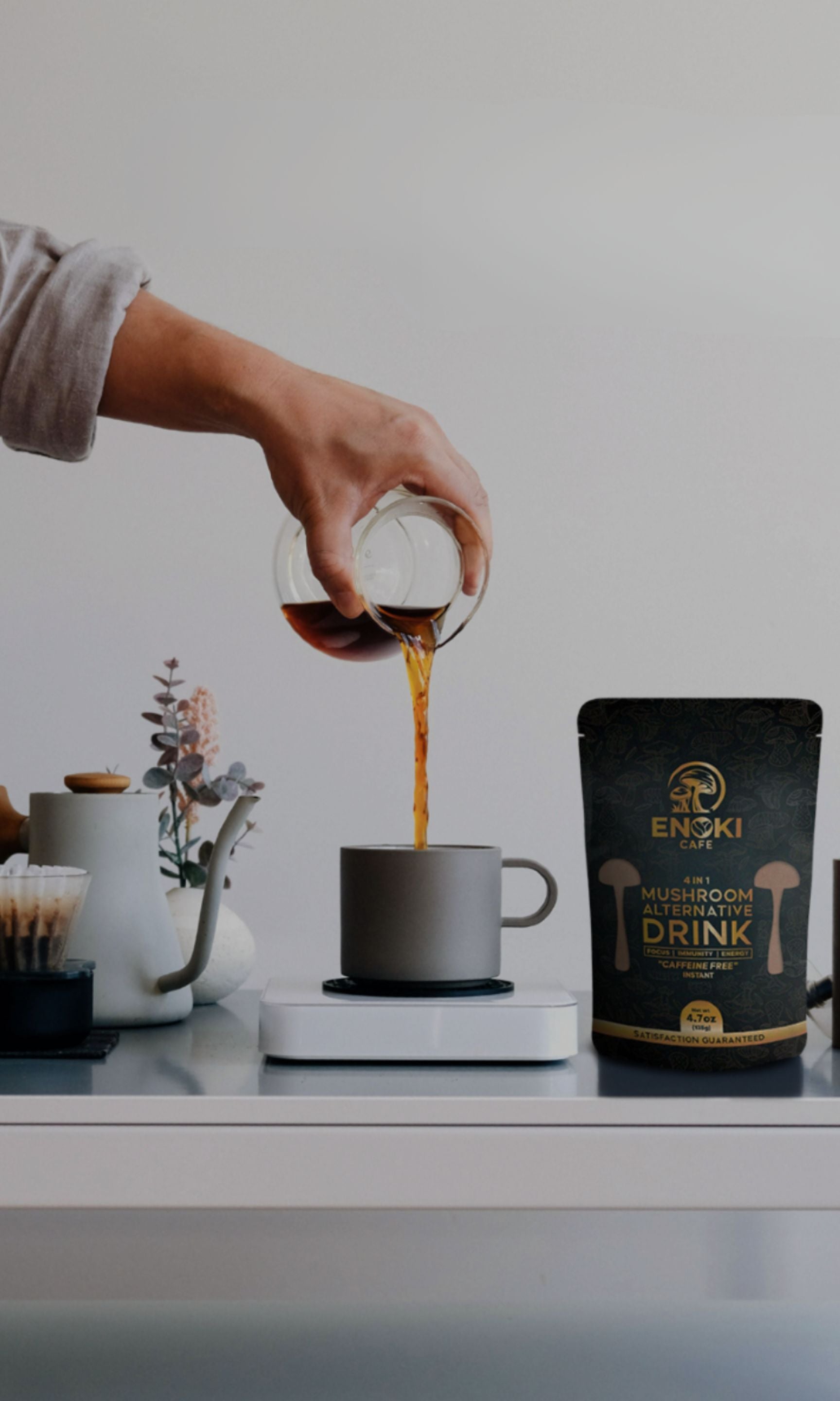 Choosing Enoki Cafe's Mushroom Mix Coffee offers a unique blend of rich flavors combined with the health benefits of functional mushrooms. This coffee is more than just a morning pick-me-up; it's a wellness experience. Infused with a carefully selected mix of mushrooms like Lion's Mane, Chaga, Cordyceps, and Shiitake. Enoki Café supports mental clarity, boosts immune function, and helps reduce stress. Unlike regular coffee, which can lead to jitteriness and energy crashes, this mushroom mix coffee provides a balanced and sustained energy boost, making it an ideal choice for those looking to enhance their overall well-being while enjoying a delicious cup of coffee. Whether you're looking to improve focus, support your immune system, or simply enjoy a smoother, less acidic coffee experience, Enoki Cafe's Mushroom Mix Coffee is the perfect choice.
