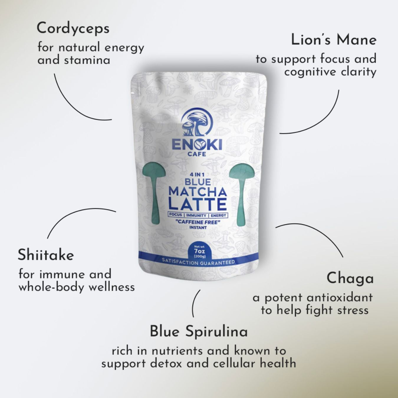 Most matcha gives you caffeine. Enoki Cafe matcha gives you a full functional stack. Each blend layers high quality matcha with mushrooms like Lion’s Mane, Cordyceps, Chaga, and Shiitake, plus collagen in selected products, to support both performance and long term wellness.